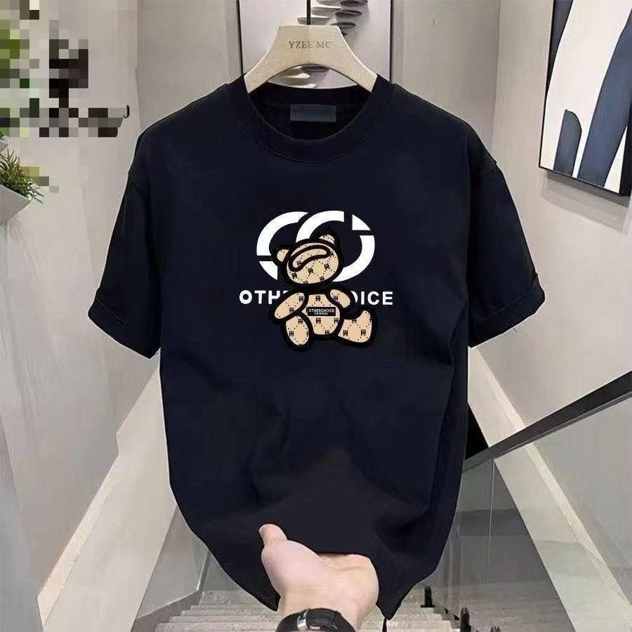Men’s Pure Cotton Black T-Shirt with Bear Print – Casual Graphic Tee