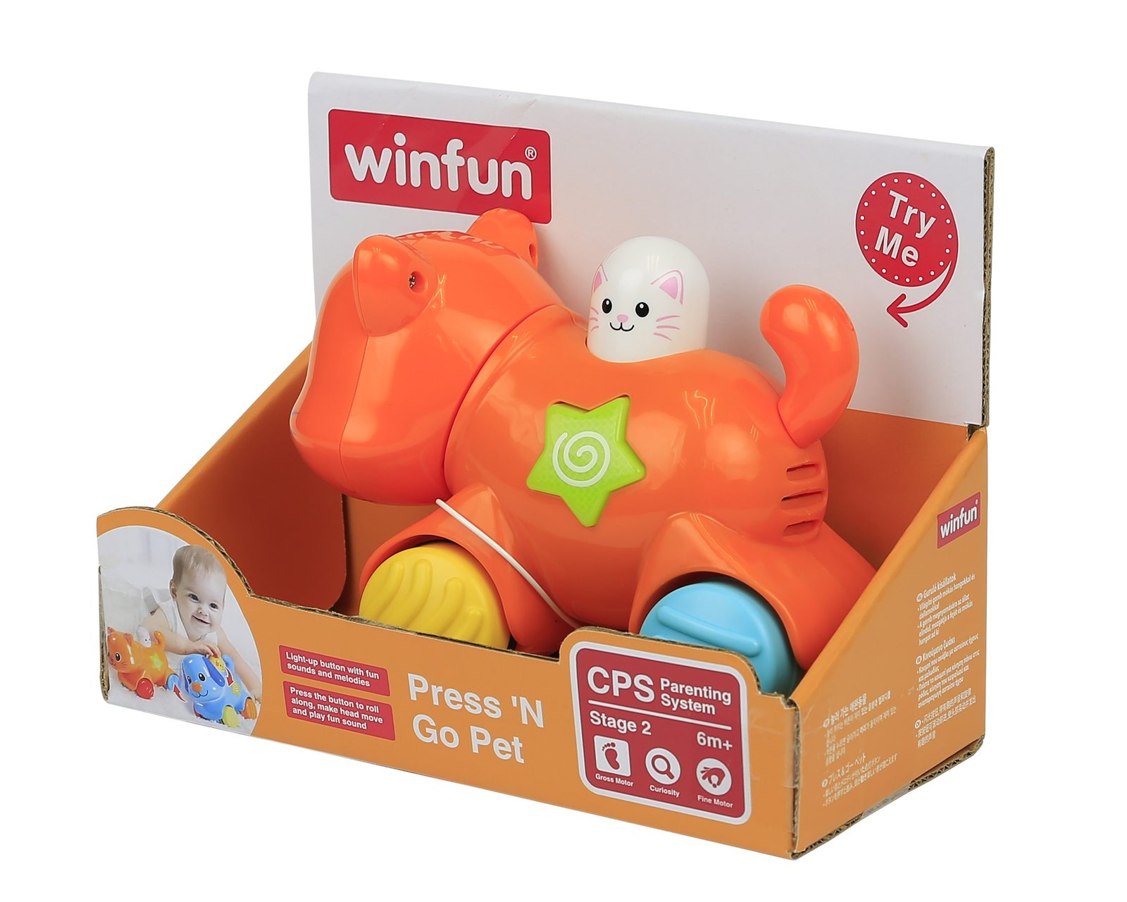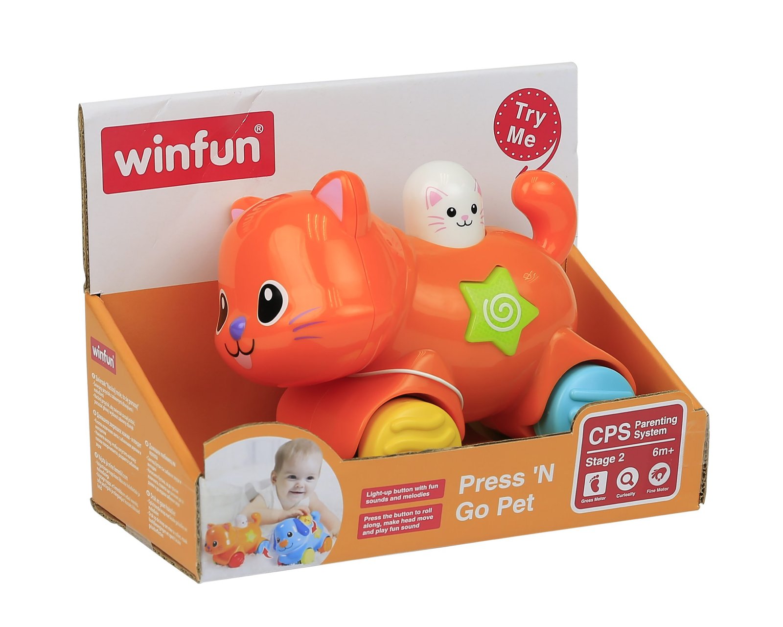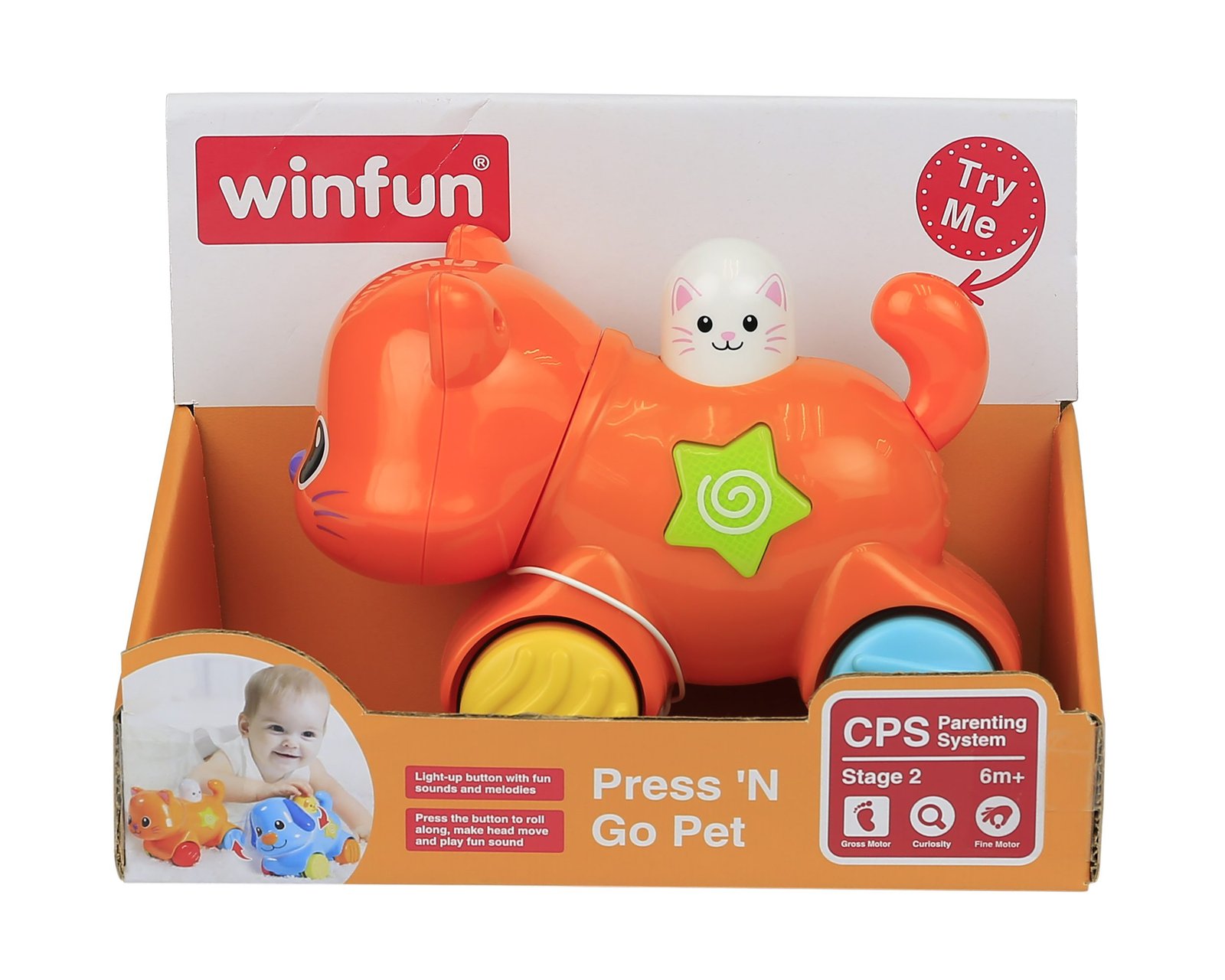 Winfun Press N Go Pet Kitten is a push-and-go toy designed for children aged 12 Months+. Winfun is a Hong Kong-based leader in developmental baby and toddler toys, trusted by parents across the UAE and globally. Every Winfun product is designed to meet European EN71 and CE safety standards, making them completely safe for babies and young children. Measuring 14 x 10 x 12 cm and crafted from abs plastic, this product is built to the highest safety standards for use in UAE homes.