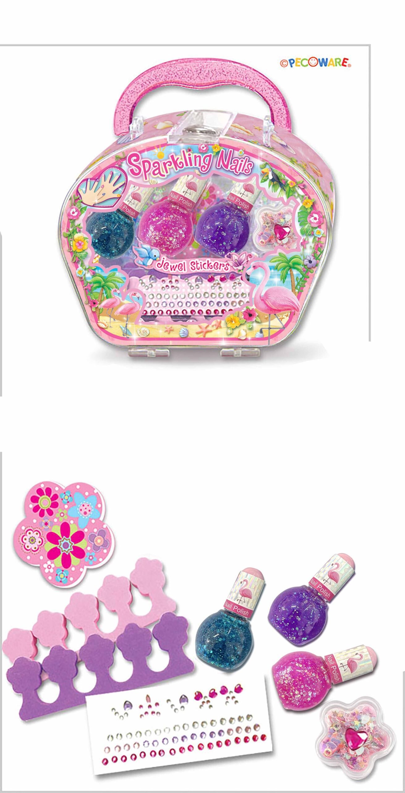 The Pecoware Sparkling Nail Set is straightforward to set up and use right out of the box. No batteries are required, making it ready to use straight away. The nail art set is designed with ergonomics appropriate for 6 Years+ children, with safe rounded edges, secure components and child-friendly proportions throughout.